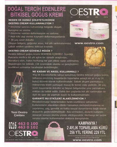 | OESTRO ORJİNAL GÖĞÜS KREMİ VE KAPSÜLLERİ %100 DOĞAL BİTKİSEL ETKİLİDİR. SADECE MERKEZİMİZ VE ECZANELERDEN SİPARİŞ VEREBİLİRSİNİZ. |